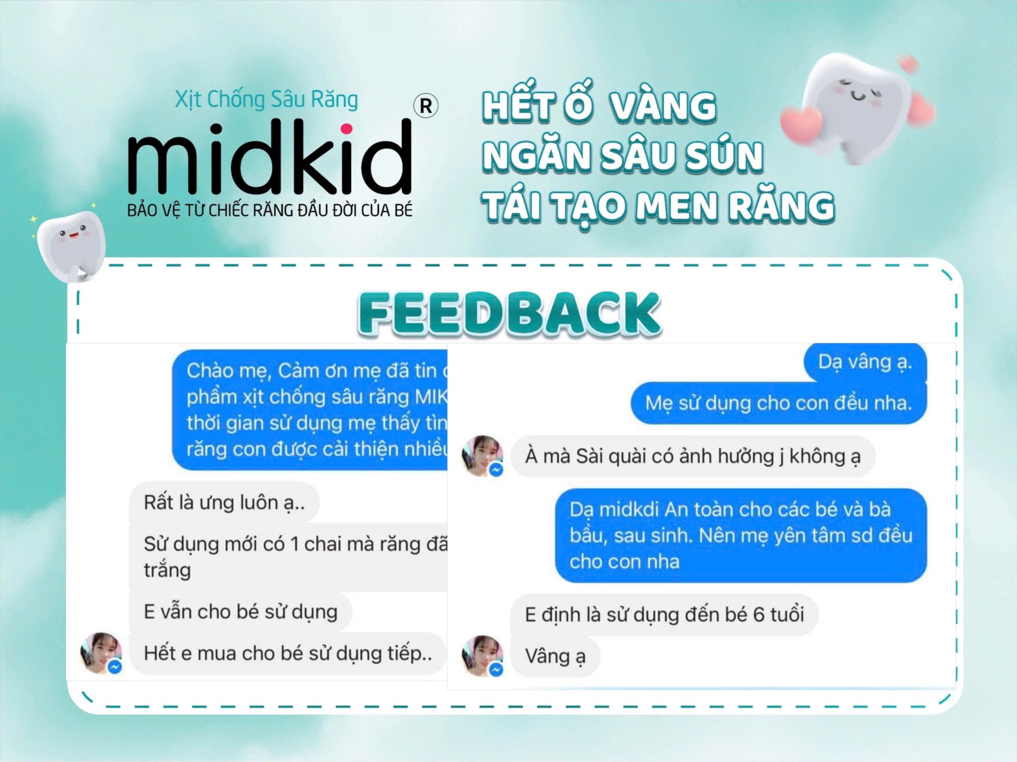 "Xịt Midkid A+ thực sự hiệu quả. Bé mình hay bị sún răng, dùng 2 tháng nay thấy men răng cứng cáp hơn hẳn, không còn lan vết sún nữa. Rất đáng đồng tiền!"