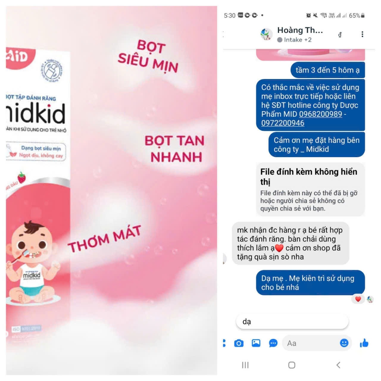 "Bé nhà mình trước đây rất sợ đánh răng, mỗi lần vệ sinh là khóc thét. Từ ngày dùng Bọt đánh răng Midkid, con thích mê vì vị ngọt nhẹ, lại có vòi tạo bọt vui mắt."