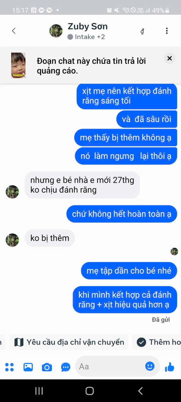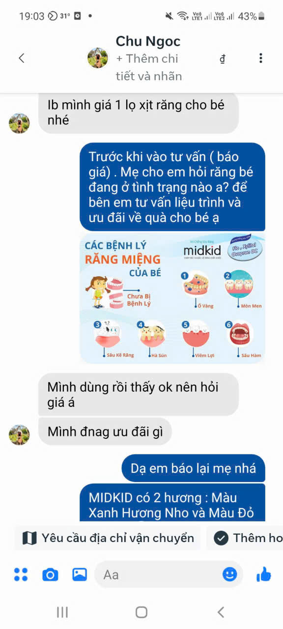"Mình mua combo được tặng bàn chải, shop đóng gói cẩn thận. Xịt răng Midkid mình dùng cho cả 2 bé 1 tuổi và 4 tuổi đều hợp."